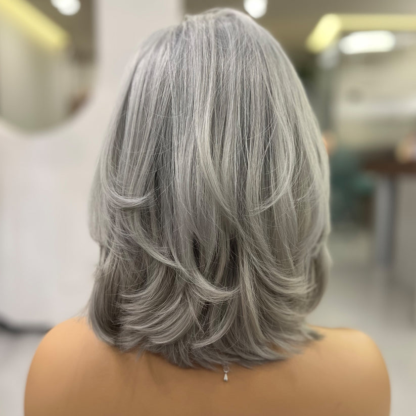 Color: Natural silver salt & pepper – sleek silver blended with soft grey for depth and dimension