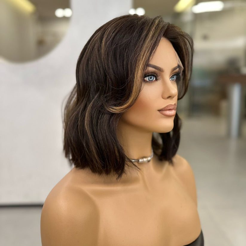 Presentamos JOCELYN, una peluca con encaje que realza tu estilo con una elegancia natural. Rizos suaves y en cascada y una base marrón oscuro intenso con suaves reflejos caramelo y rubio dorado crean un brillo luminoso y bronceado. Ligera, cómoda y versátil, aporta volumen y dimensión a la vez que enmarca el rostro a la perfección, perfecta para el día a día o para ocasiones especiales.
