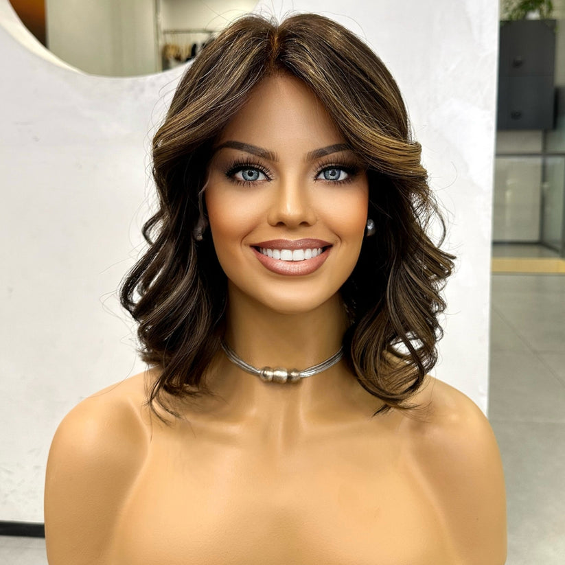 KYLIE es una lujosa peluca con rizos suaves y flexibles en un intenso castaño con reflejos caramelo y rubio dorado para un efecto radiante y bronceado. Sus suaves ondas enmarcan el rostro a la perfección, mientras que el forro de seda sin costuras y la parte superior de encaje de terciopelo de lujo ofrecen comodidad y un peinado versátil. Perfecta para la elegancia del día a día o para ocasiones especiales, esta peluca irradia sofisticación y glamour natural.