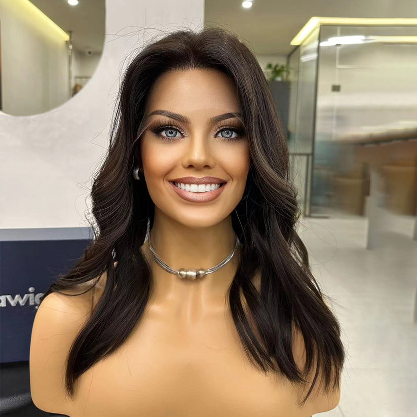 El encaje suizo transparente se integra a la perfección con el tono de tu piel, mientras que el encaje frontal de oreja a oreja ofrece una línea de cabello imperceptible para un look natural. Con ligeros nudos decolorados, esta peluca ofrece una apariencia realista del cuero cabelludo, realzando su autenticidad.