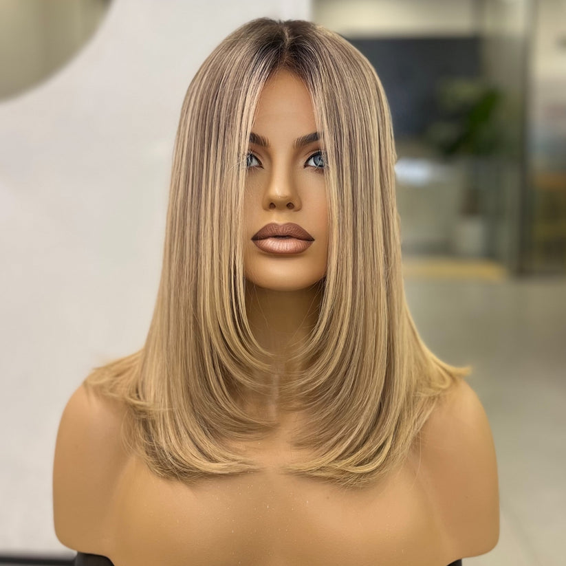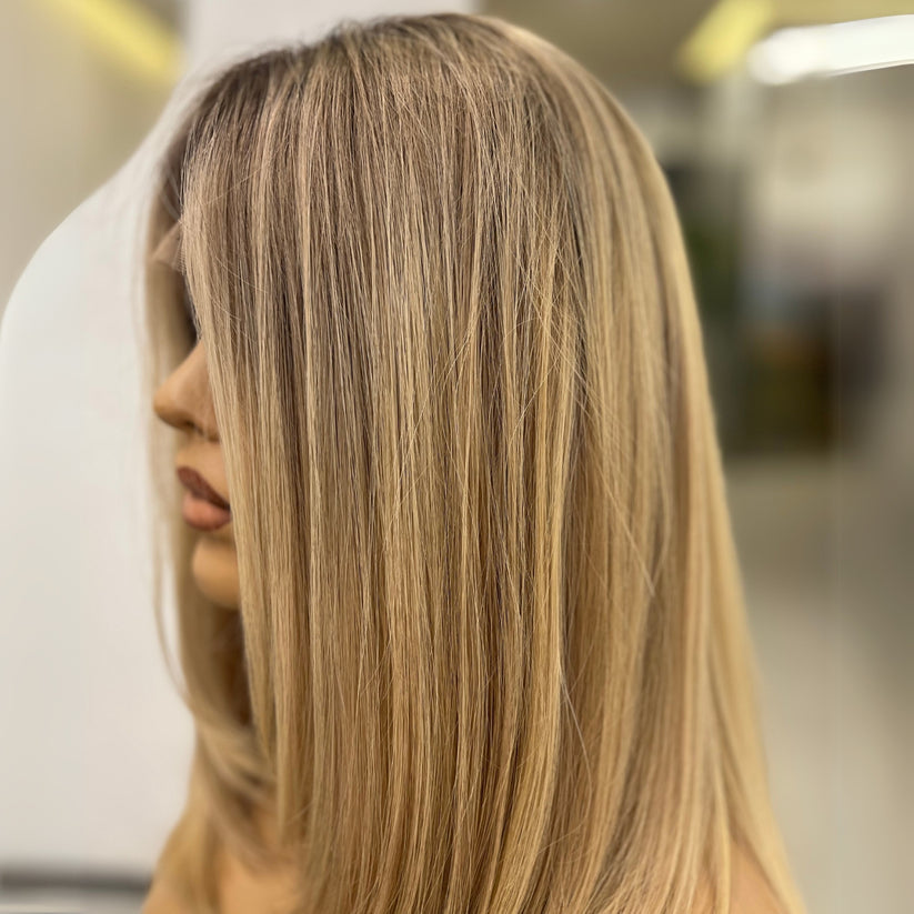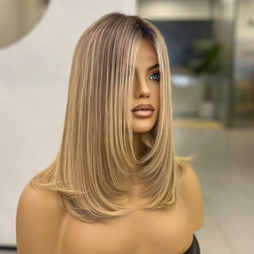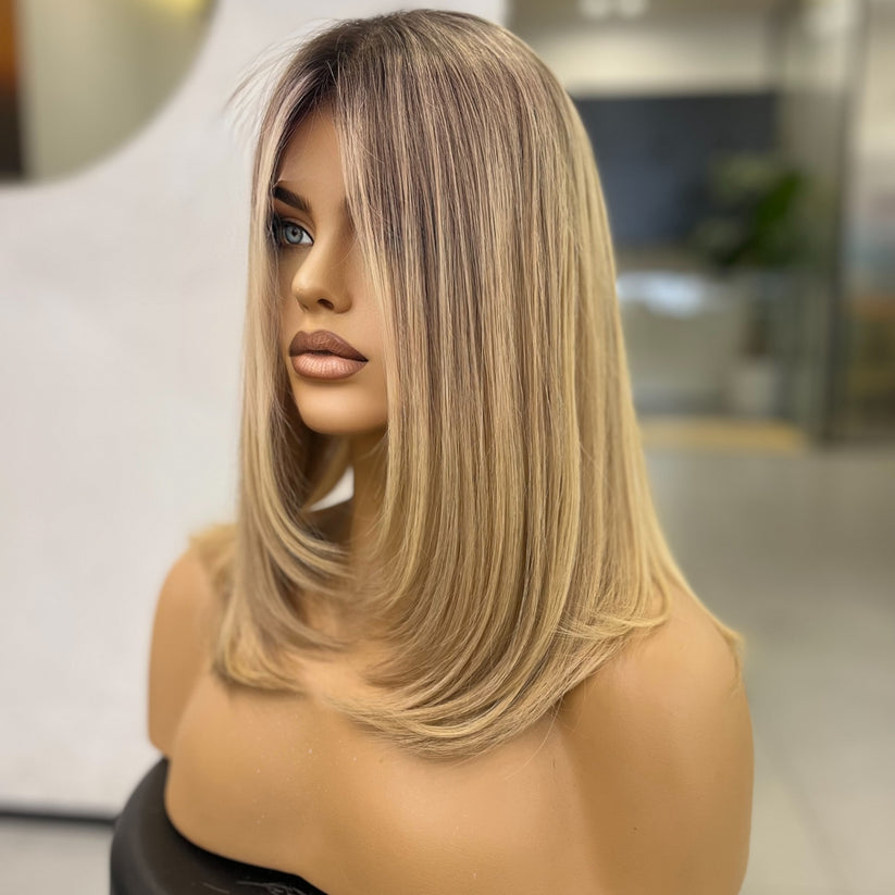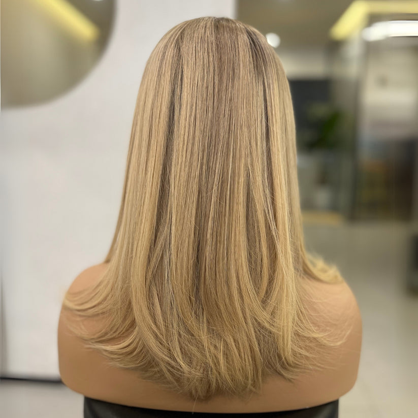 KRISS — медово-кремовый блонд с натуральными корнями | Парик Signature — 16 дюймов (35 см) из монгольских натуральных волос