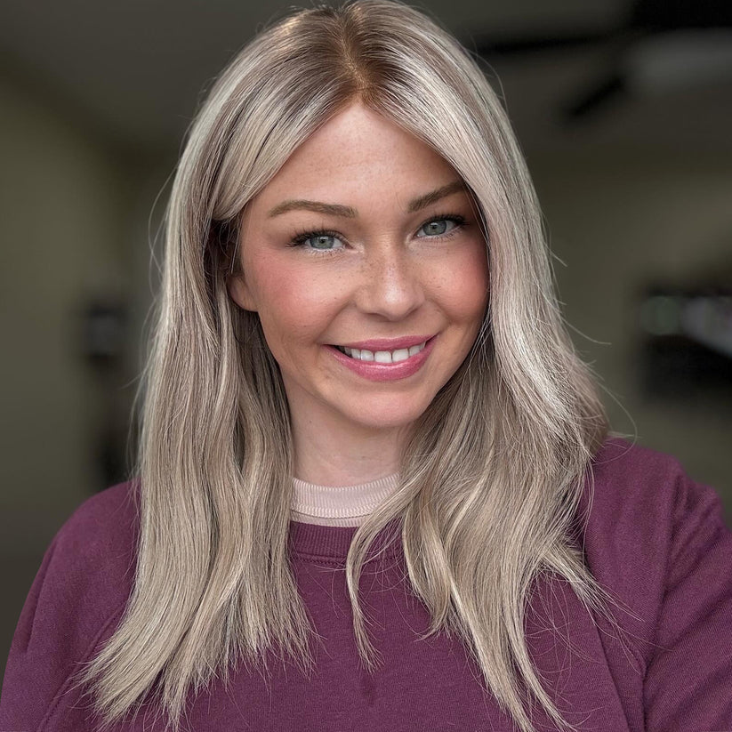 SARAH – Холодный блонд, обрамляющий лицо – Изысканное сочетание холодных блондинистых оттенков, которые красиво обрамляют ваше лицо, придавая ему гладкий, изысканный вид с ноткой непринужденного гламура, идеально подходит для дополнения любого стиля.
